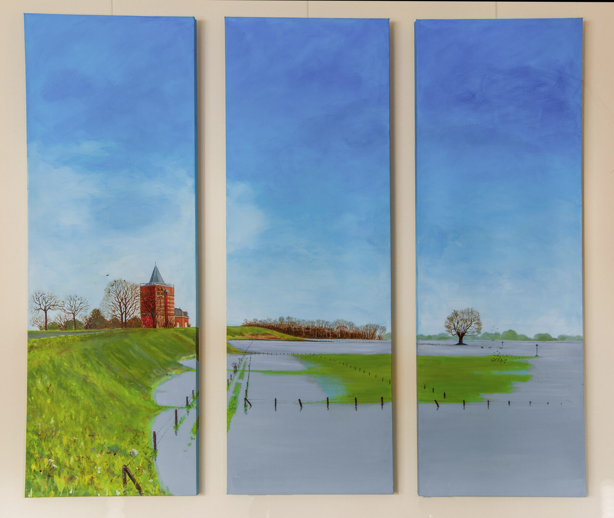 Drieluik Varik bij hoog water Acryl drie maal 120×40