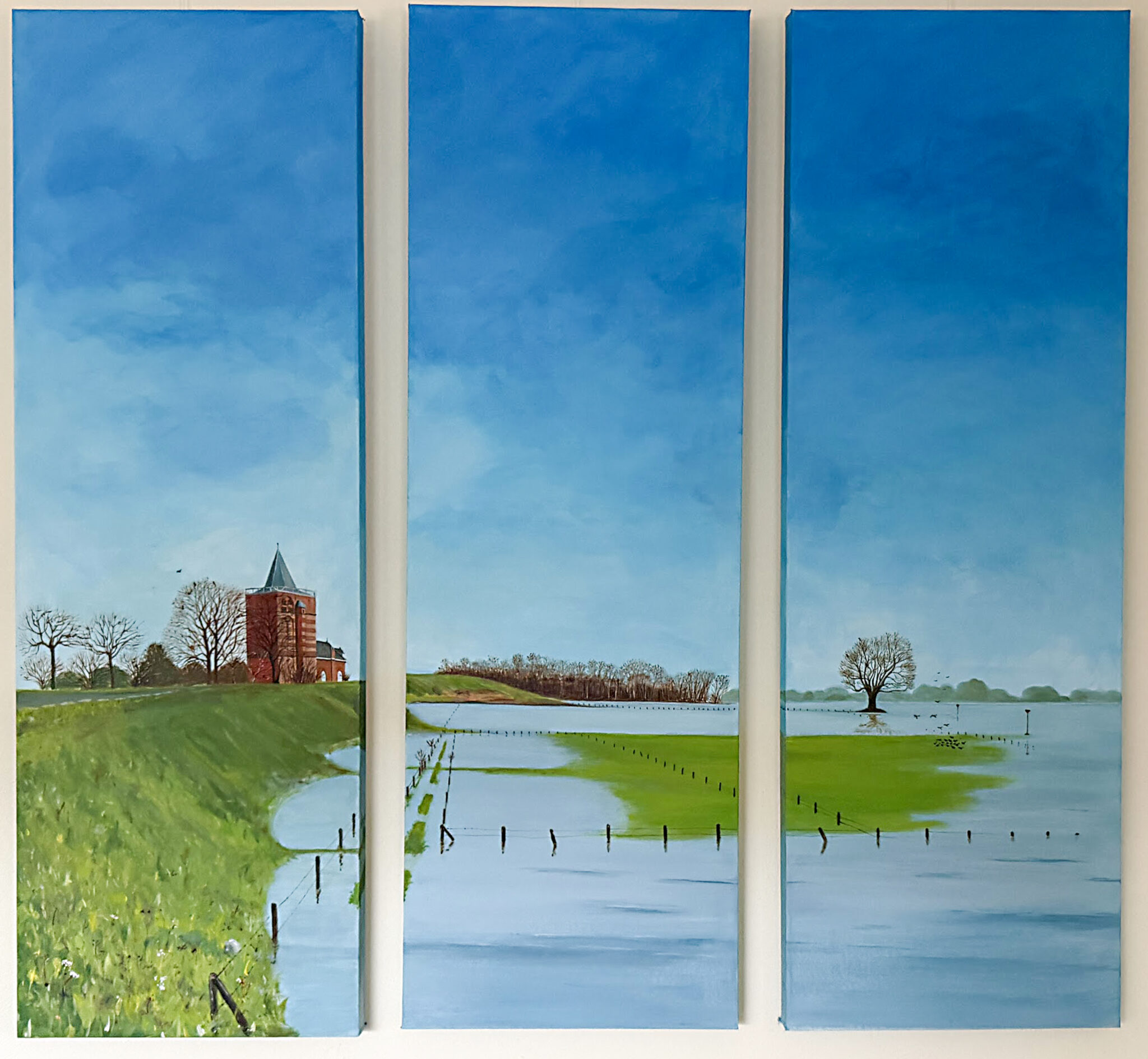 Drieluik Varik bij hoog water Acryl drie maal 120×40
